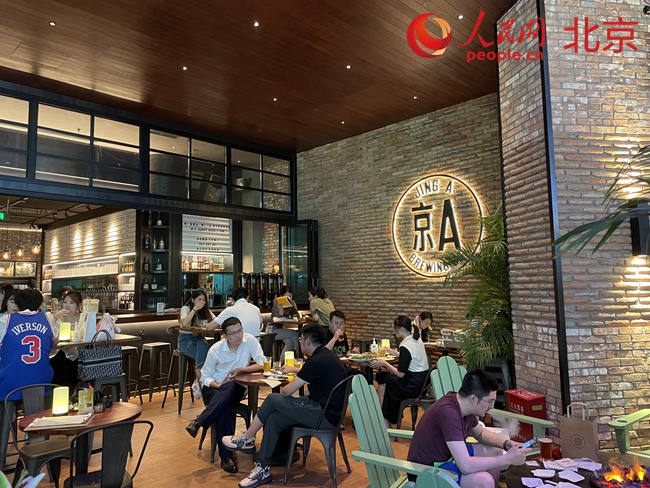 除了火鍋店,一家名為“京A Taproom”的美式精釀啤酒餐吧也熱鬧十足。美式工業(yè)風(fēng)的裝潢極具格調(diào),炸雞配啤酒的組合也頗有人氣。“這里的氛圍我很喜歡,小吃和啤酒也很對我的胃口,來這里能夠忘掉那些煩惱和壓力?!崩钆吭诠ぷ髁艘惶熘?,邀約了朋友一起來這家餐吧放松心情。