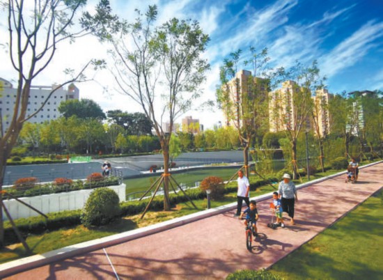 亮馬河國際風情水岸的總面積80萬平方米,其中可供市民休閑的公共空間就占了75%。有幼兒園的河段,建起了兒童攀爬墻,有老小區(qū)的河段,健身設施就格外多。濱河綠道從東直門外斜街一路蜿蜒至四環(huán)路,與朝陽綠道銜接,橋下空間也打通了,沿河遛彎兒的人不必再穿行市政道路。