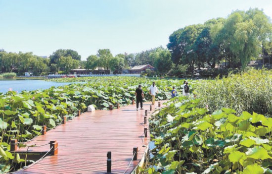 近幾年來(lái),什剎海西海通過(guò)拆除違建、疏通堵點(diǎn)亮出岸線,還湖于民,讓西?!办o”下來(lái)。西海濕地全線共新建7處總計(jì)1000平方米的環(huán)湖觀景棧道,成為市民休憩觀景的親水之地。