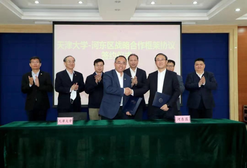 河?xùn)|區(qū)政府與天津大學(xué)簽訂戰(zhàn)略合作協(xié)議。河?xùn)|區(qū)融媒體中心供圖
