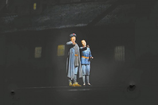 “閻老師可以再往前走幾步,要不然后面的合唱團(tuán)一上來有點(diǎn)擠?!蔽枧_監(jiān)督陳歡用激光筆指了一下舞臺的前側(cè)區(qū)域。歌唱家閻維文點(diǎn)點(diǎn)頭,對臺下比了“OK”的手勢。燈光再次到位,排練繼續(xù),多媒體影像配合著兩側(cè)峭壁般聳立的舞美裝置,讓湘江翻涌的江水和咆哮的戰(zhàn)火穿越歷史,滾滾而來。