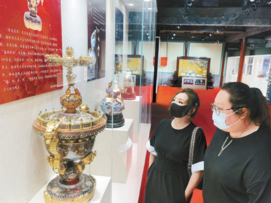 昨天,“匠心筑夢(mèng)共創(chuàng)未來(lái)——燕京八絕非遺創(chuàng)新精品展暨中國(guó)工藝美術(shù)大師張同祿景泰藍(lán)傳承作品特展”在千年古剎承恩寺北京燕京八絕博物館開幕。觀眾品鑒了《座龍花薰》《富貴恒通》《花漫春和》《智趣》等二十余件題材豐富廣泛、釉質(zhì)細(xì)膩華美、造型多姿多彩、立意莊重深遠(yuǎn)的景泰藍(lán)工藝精品。 本報(bào)記者 吳鏑攝