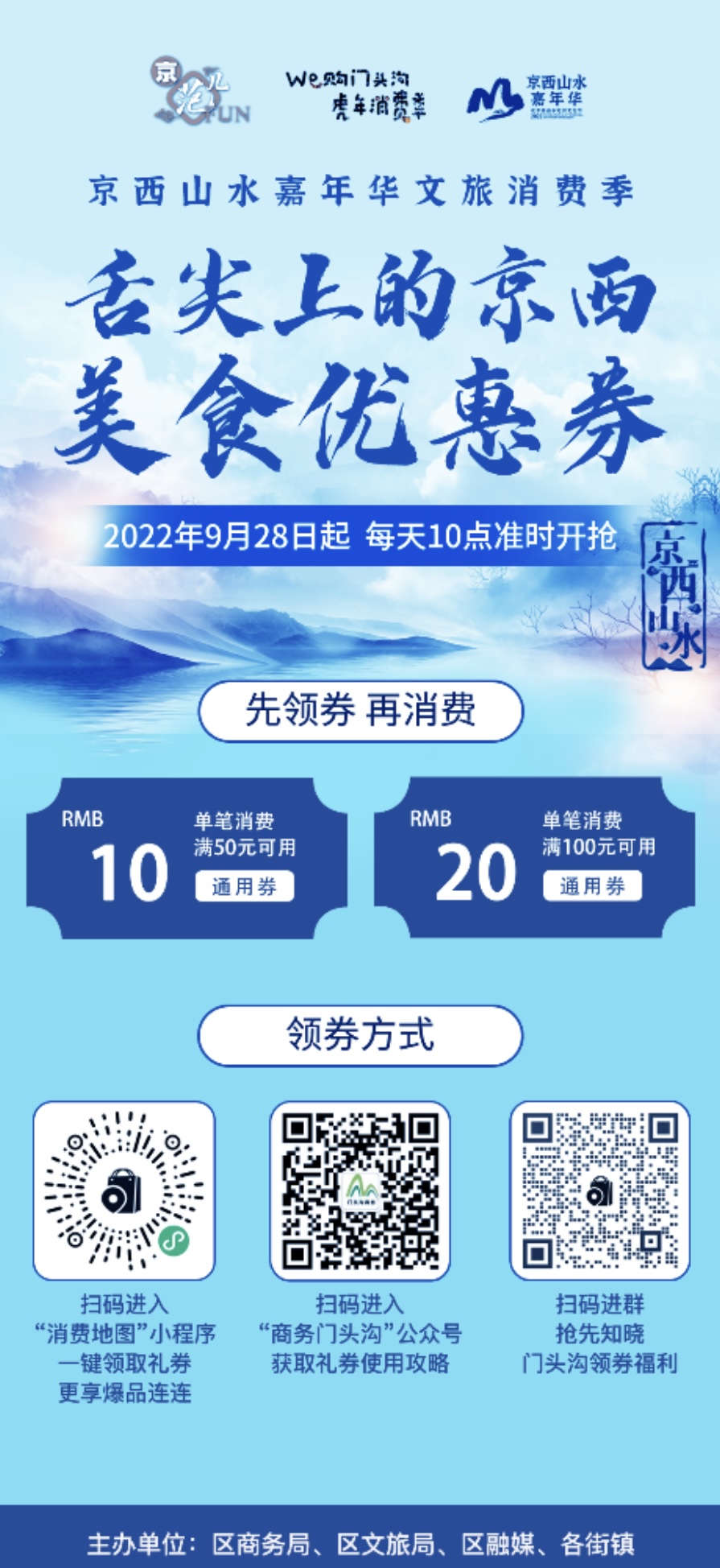 人民網(wǎng)北京9月28日電 (池夢蕊)9月28日上午10點,門頭溝區(qū)將準(zhǔn)時啟動“舌尖上的京西”美食優(yōu)惠券發(fā)放活動,通過城市消費運營平臺“消費地圖-溝購有品”微信小程序面向市民發(fā)放,鼓勵市民來門頭溝區(qū)消費。