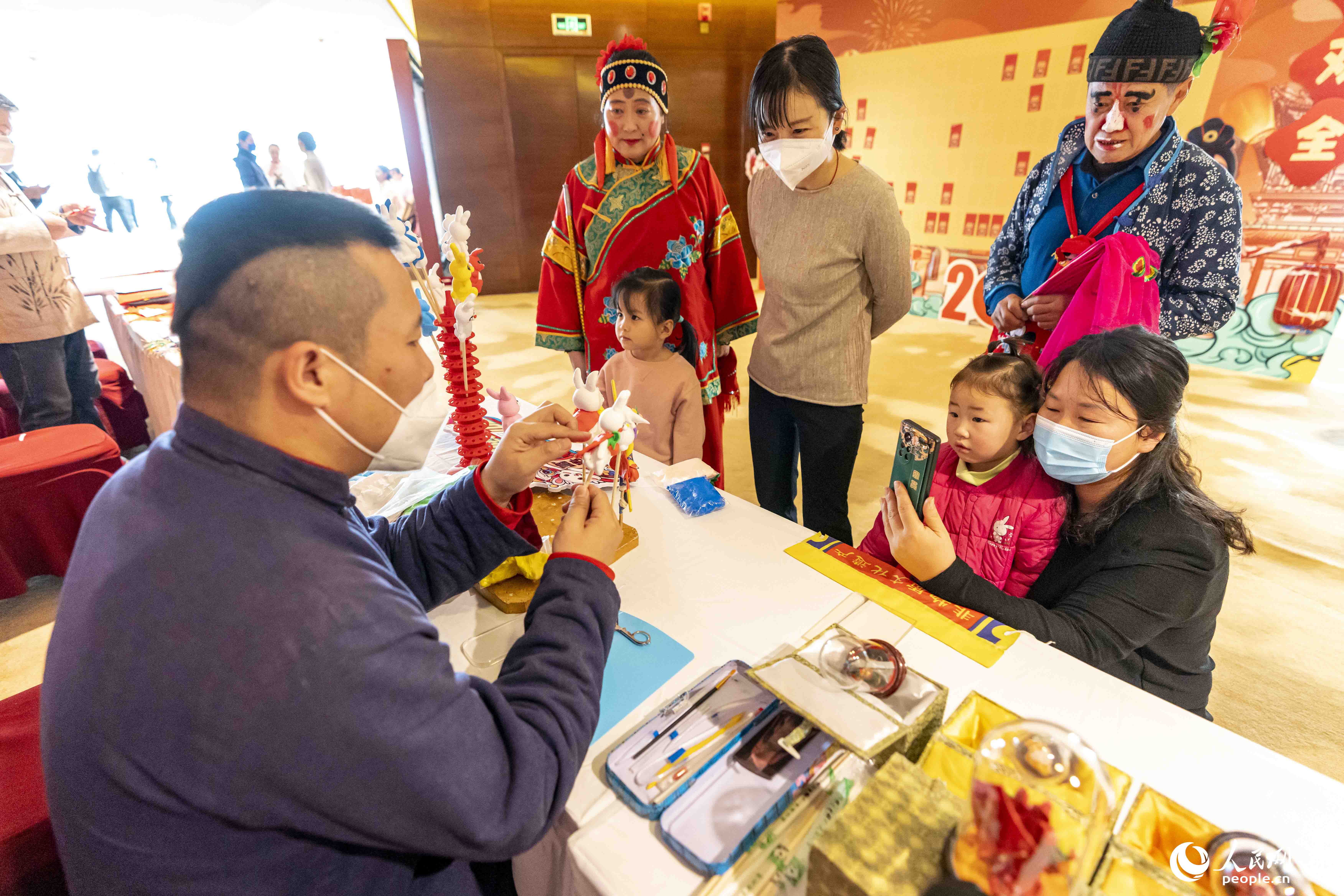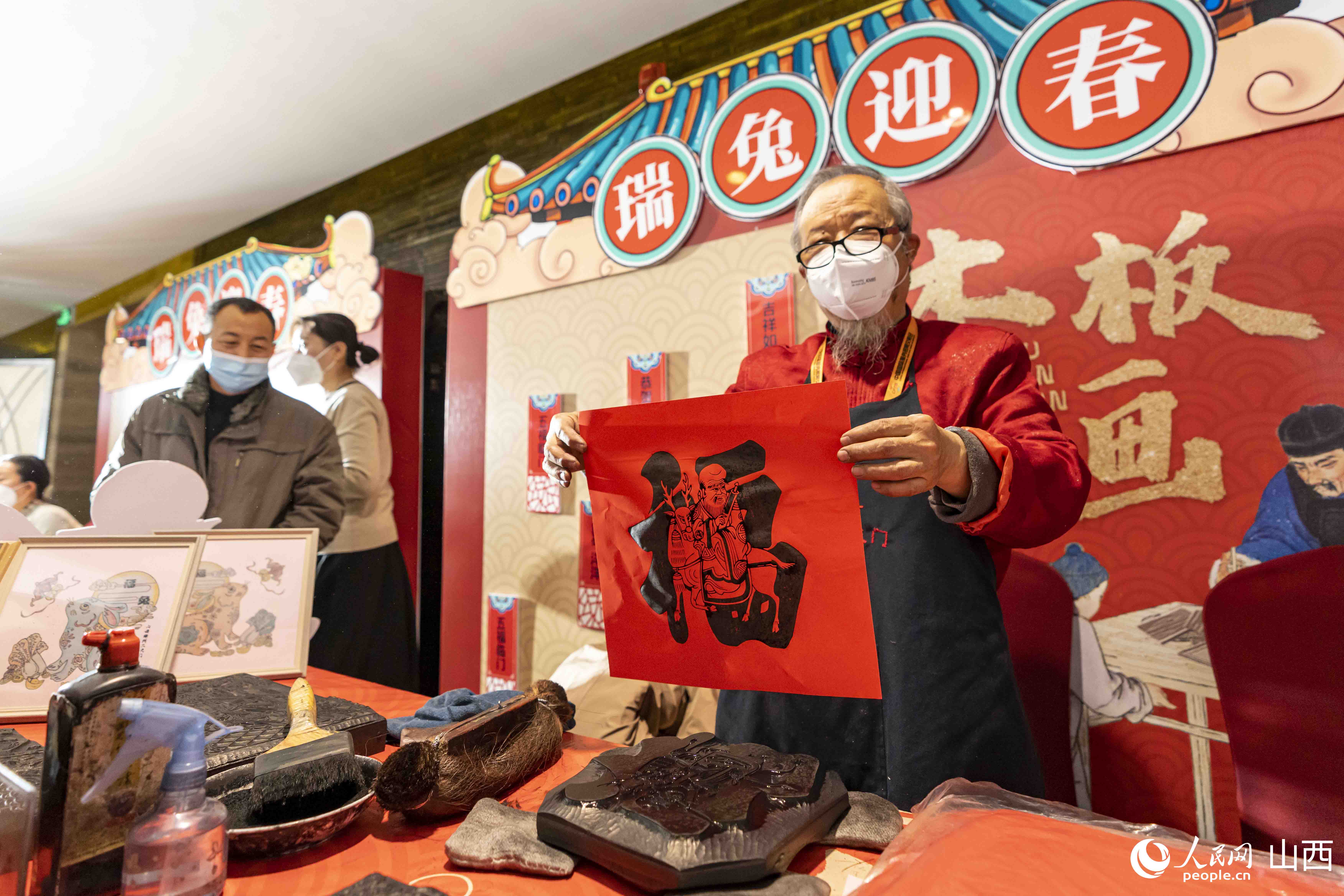 在推介活動(dòng)現(xiàn)場,精心布置了“新春市集”互動(dòng)體驗(yàn)區(qū)、年俗非遺互動(dòng)體驗(yàn)區(qū)、年俗節(jié)目快閃區(qū)等頗具山西特色文化的體驗(yàn)區(qū)域,營造了喜慶、熱烈的春節(jié)氛圍。剪紙、木板年畫、糖畫、面塑等項(xiàng)目,讓現(xiàn)場嘉賓沉浸式體驗(yàn)山西非遺的獨(dú)特魅力。在山西年俗表演快閃區(qū)域,舞獅表演、旱船等山西社火表演,讓濃濃的年味迎面撲來?;顒?dòng)中,飽含山西大院文化符號(hào)、中國結(jié)等元素,寓意團(tuán)圓美滿的山西文旅兔年IP形象“晉小美”也首次亮相。