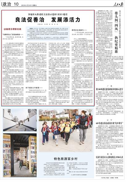 編者按:今年中央一號(hào)文件提出,加強(qiáng)鄉(xiāng)村法治教育和法律服務(wù),深入開展“民主法治示范村(社區(qū))”創(chuàng)建。最高人民法院工作報(bào)告提出,要“積極促進(jìn)城鄉(xiāng)基層治理和平安法治鄉(xiāng)村建設(shè)”“加強(qiáng)法治宣傳教育”“引導(dǎo)全民增強(qiáng)法治觀念”。