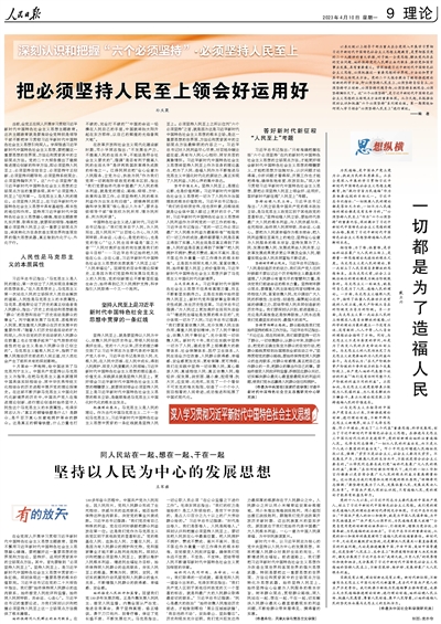 以縣處級(jí)以上領(lǐng)導(dǎo)干部為重點(diǎn)在全黨深入開展學(xué)習(xí)貫徹習(xí)近平新時(shí)代中國特色社會(huì)主義思想主題教育,是貫徹落實(shí)黨的二十大精神的重大舉措,對(duì)于統(tǒng)一全黨思想、解決黨內(nèi)存在的突出問題、始終保持黨同人民群眾血肉聯(lián)系、推動(dòng)黨和國家事業(yè)發(fā)展,具有重要意義。學(xué)深悟透習(xí)近平新時(shí)代中國特色社會(huì)主義思想,必須把握這一重要思想的世界觀、方法論和貫穿其中的立場(chǎng)觀點(diǎn)方法。黨的二十大報(bào)告提出了繼續(xù)推進(jìn)理論創(chuàng)新的科學(xué)方法,即必須堅(jiān)持人民至上、必須堅(jiān)持自信自立、必須堅(jiān)持守正創(chuàng)新、必須堅(jiān)持問題導(dǎo)向、必須堅(jiān)持系統(tǒng)觀念、必須堅(jiān)持胸懷天下。這“六個(gè)必須堅(jiān)持”,是習(xí)近平新時(shí)代中國特色社會(huì)主義思想的立場(chǎng)觀點(diǎn)方法的重要體現(xiàn)。從今天起,本報(bào)推出深刻認(rèn)識(shí)和把握“六個(gè)必須堅(jiān)持”系列理論版。第一期圍繞如何深入學(xué)習(xí)領(lǐng)會(huì)“必須堅(jiān)持人民至上”進(jìn)行闡述。