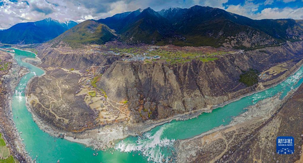 鳥瞰雅魯藏布江畔的索松村(無(wú)人機(jī)拼接照片,4月5日攝)。新華社記者 姜帆 攝