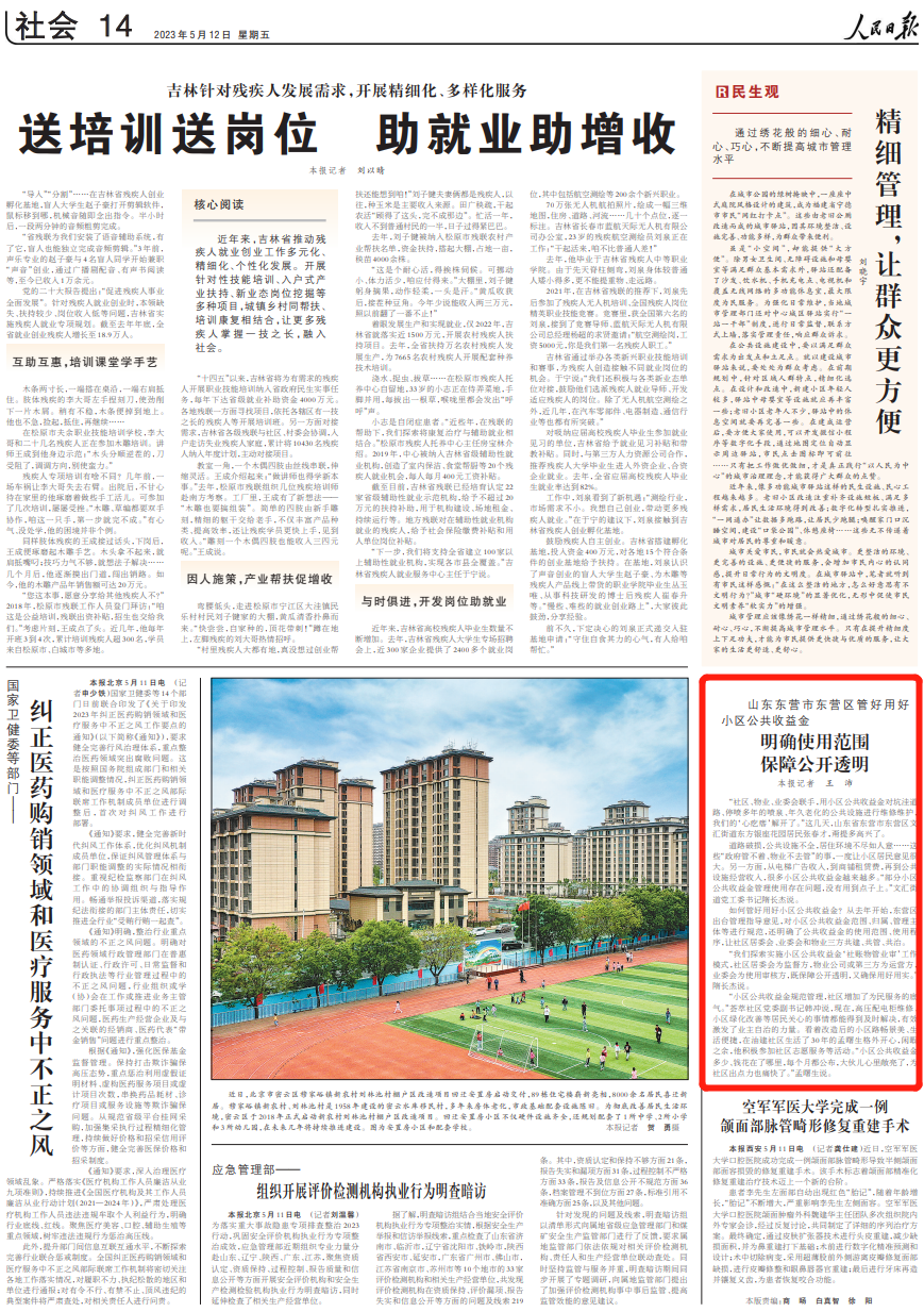 人民日?qǐng)?bào) | 東營市東營區(qū)管好用好小區(qū)公共收益金