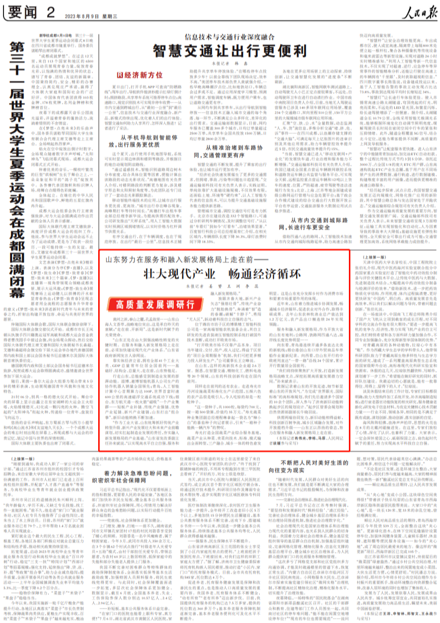 人民日報點贊山東:壯大現(xiàn)代產(chǎn)業(yè) 暢通經(jīng)濟(jì)循環(huán)