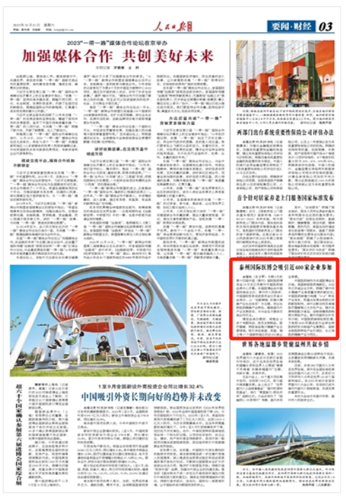 人民日?qǐng)?bào)海外版:泰州國(guó)際醫(yī)博會(huì)吸引近600家企業(yè)參加