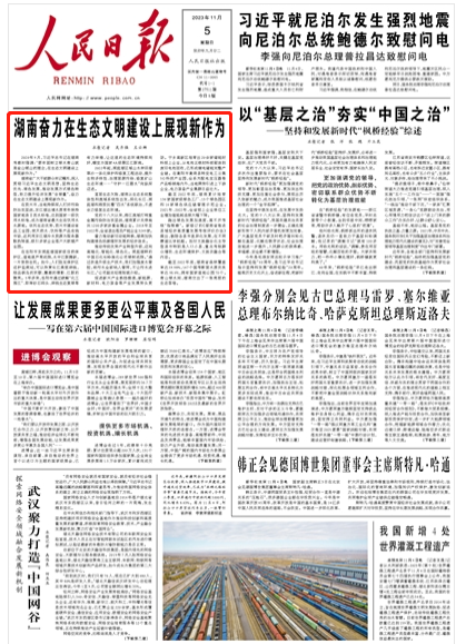 人民日報(bào)頭版頭條聚焦丨湖南奮力在生態(tài)文明建設(shè)上展現(xiàn)新作為