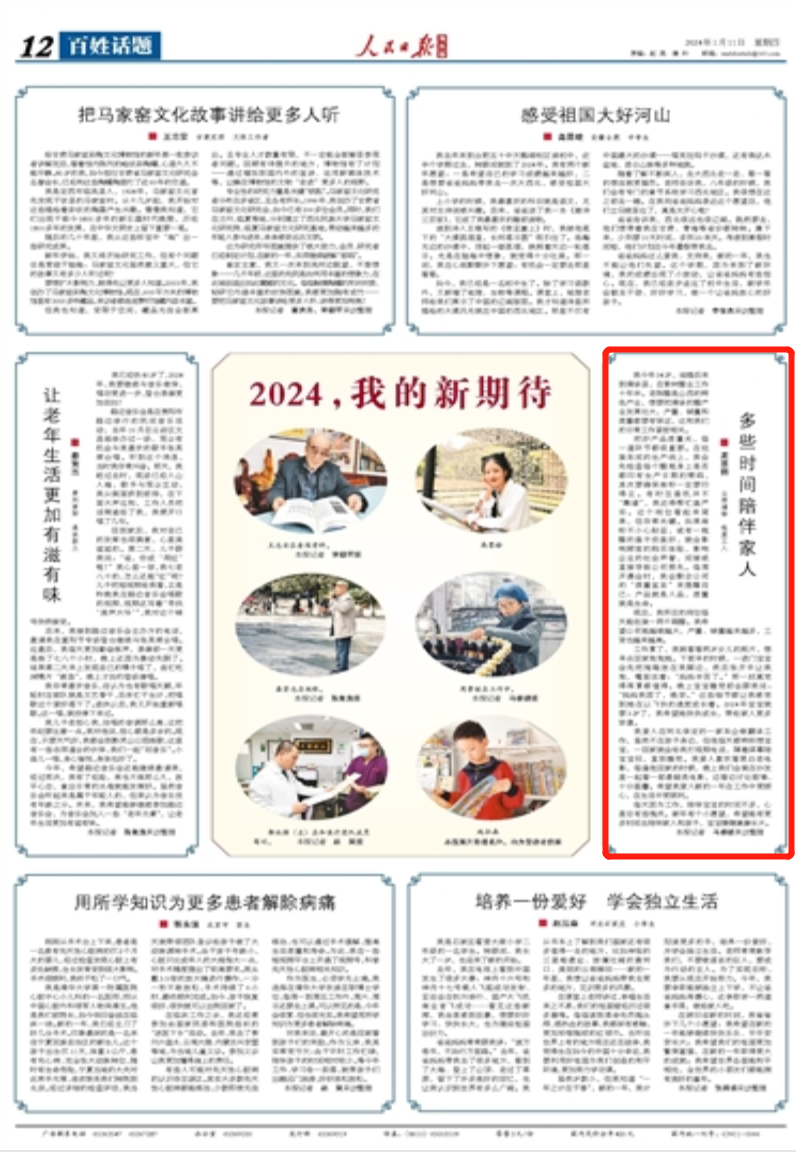 對(duì)我來(lái)說(shuō),最開(kāi)心的是回家看到孩子們的笑臉。作為父親,我其實(shí)常覺(jué)虧欠:由于平時(shí)工作忙碌,陪伴孩子的時(shí)間相對(duì)較少。等今年工作、學(xué)習(xí)告一段落,就帶孩子們出趟遠(yuǎn)門(mén)旅游,好好放松放松。