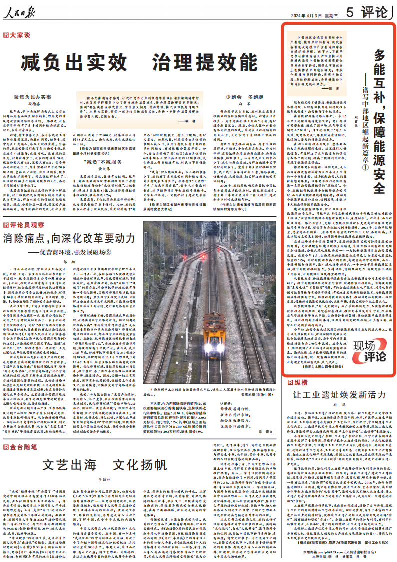建設(shè)新型能源體系,做優(yōu)做強傳統(tǒng)能源是必要之舉。習(xí)近平總書記在新時代推動中部地區(qū)崛起座談會上強調(diào),“注重傳統(tǒng)能源與新能源多能互補、深度融合”。近年來,山西以坑口煤電一體化為重點,支持大型現(xiàn)代化煤礦和先進(jìn)高效環(huán)保煤電機組同步布局建設(shè),超臨界電力機組比例持續(xù)提升。2023年,山西產(chǎn)煤增量、總量均居全國第一,全年外送電量達(dá)1576億千瓦時,再創(chuàng)新高。立足以煤為主的基本國情,必須提升傳統(tǒng)能源兜底保障能力。