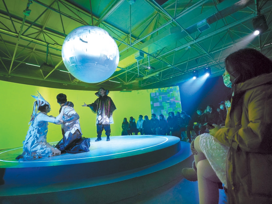 后浸沒(méi)式戲劇《畫(huà)皮2677》在繁星戲劇村全新的場(chǎng)景里上演,沒(méi)有舞臺(tái),也沒(méi)有座位,取而代之的是在“未來(lái)”和“古風(fēng)”之間穿梭變換的情境。觀眾進(jìn)入劇場(chǎng)的同時(shí)成為更具有參與感和體驗(yàn)感的“戲劇玩家”。本報(bào)記者 方非攝