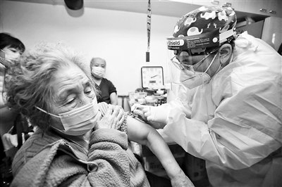 家住懷柔區(qū)楊宋鎮(zhèn)楊宋莊村98歲的曹女士,也在家人和村鎮(zhèn)干部的陪伴下順利完成了第一針新冠疫苗接種。在疫苗接種點(diǎn)現(xiàn)場(chǎng),面對(duì)近百歲的接種老人,工作人員全程陪同,開(kāi)通“綠色通道”,醫(yī)護(hù)人員詳細(xì)詢問(wèn)了老人的過(guò)往病史、當(dāng)前身體狀況和日常服藥情況,為她進(jìn)行了測(cè)量血壓等項(xiàng)目的檢查,并現(xiàn)場(chǎng)進(jìn)行了健康評(píng)估,確認(rèn)老人符合接種的條件。在充分告知、知情同意接種后,老人成功接種新冠疫苗第一針,全程未出現(xiàn)不適?!皣?guó)家免費(fèi)給我們接種疫苗,這是好事。我平時(shí)身體還可以,打了疫苗,我心里踏實(shí),家里人也就更放心?!崩先苏f(shuō)。
