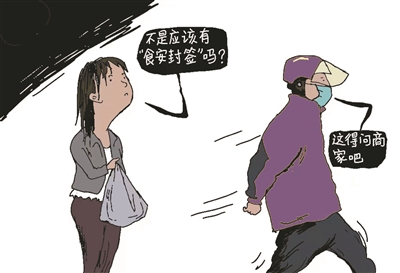 前幾天,京津冀三地消協(xié)聯(lián)合向外賣餐飲服務(wù)企業(yè)發(fā)出推廣使用食安封簽的倡議,建議企業(yè)施行“一餐一封簽”制度,并向外賣餐飲企業(yè)贈(zèng)送500萬枚“食安封簽”,得到了 30余個(gè)品牌外賣餐飲服務(wù)企業(yè)的響應(yīng)。這種柔性倡導(dǎo)服務(wù)與法律的剛性要求相結(jié)合,可以讓食安封簽制度取得更好的落地效果,值得各地各有關(guān)部門學(xué)習(xí)借鑒。漫畫/陳彬