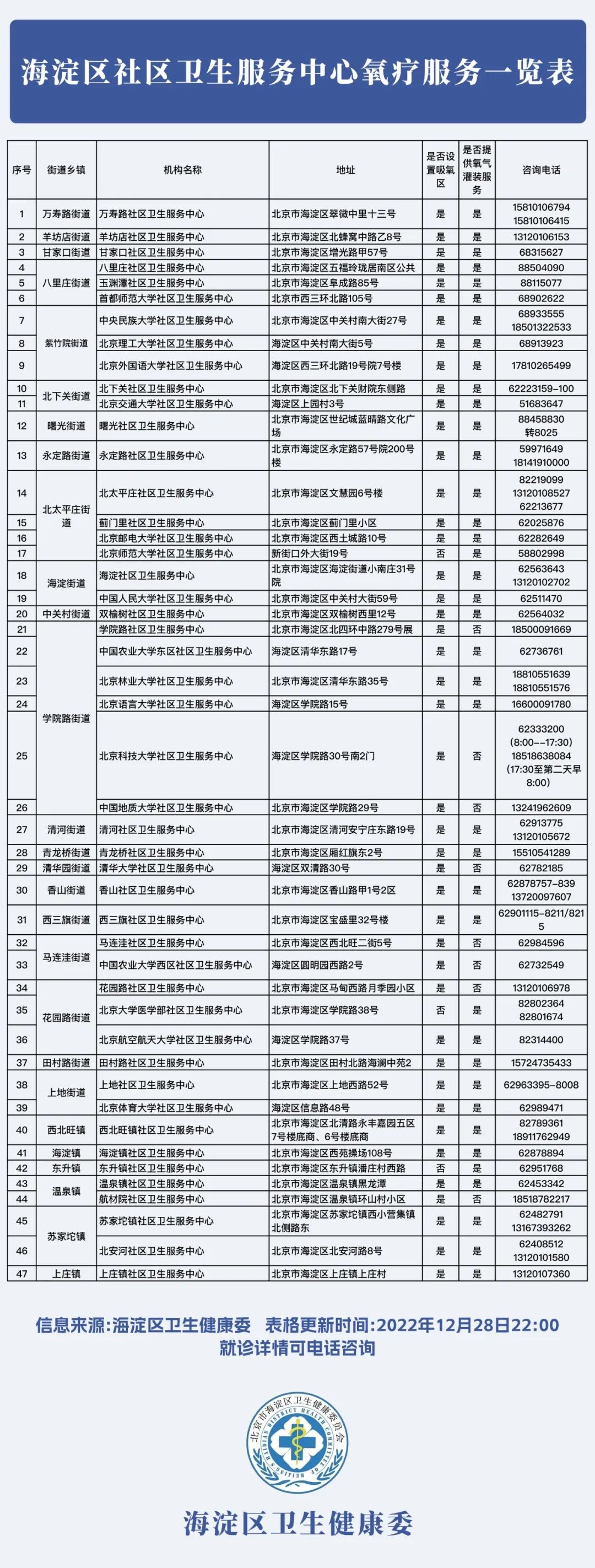 北京海淀區(qū)47家社區(qū)衛(wèi)生服務(wù)中心提供氧療服務(wù),一覽表請查收