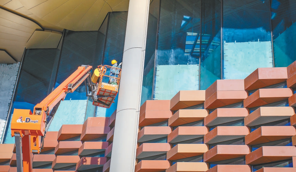 城市副中心圖書(shū)館項(xiàng)目周邊,首都博物館東館、大劇院項(xiàng)目同樣按下了建設(shè)“加速鍵”。僅首都博物館東館項(xiàng)目,目前就有600余人堅(jiān)守崗位,在確保疫情防控安全的前提下盡最大努力確保工程進(jìn)度。目前,首都博物館東館屋面幕墻安裝基本完成,正在進(jìn)行室內(nèi)吊頂鋁拉網(wǎng)收尾,室內(nèi)普通裝修完成60%以上,精裝工程完成45%以上,機(jī)電安裝工程完成75%以上。