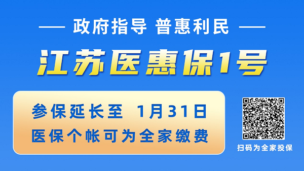 2023年度“江蘇醫(yī)惠保1號(hào)”投保通道延期至1月31日 請(qǐng)抓緊參保!