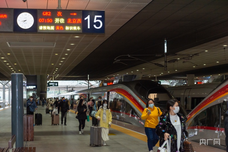 乘客搭乘G82次復(fù)興號智能型動車組出行(央廣網(wǎng)記者 黃璐璐攝)