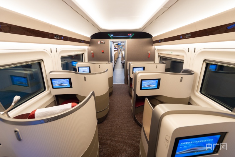復(fù)興號智能型動車組車廂里“科技感”、“時尚感”滿滿(央廣網(wǎng)發(fā) 廣鐵集團(tuán)供圖)