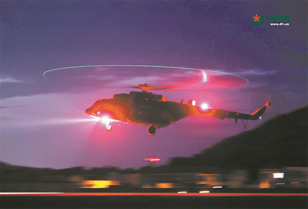 某陸航旅海上實兵實彈演練在夜間打響。張歡朋 攝