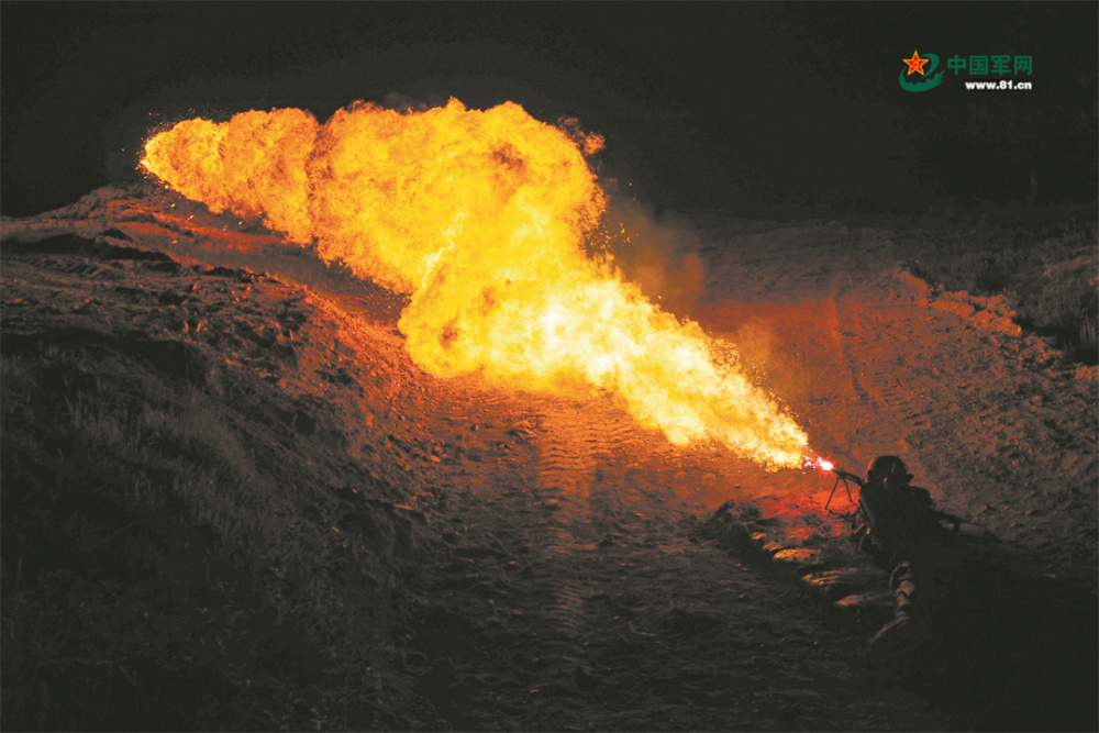 陸軍某旅組織防化分隊開展夜間噴火器實噴訓(xùn)練。萬智奇 攝