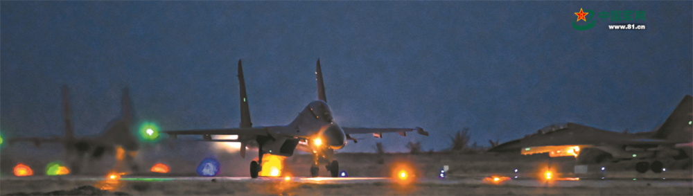 空軍航空兵某旅戰(zhàn)機蓄勢待發(fā),即將開展夜間飛行訓(xùn)練。喻澤琪 攝