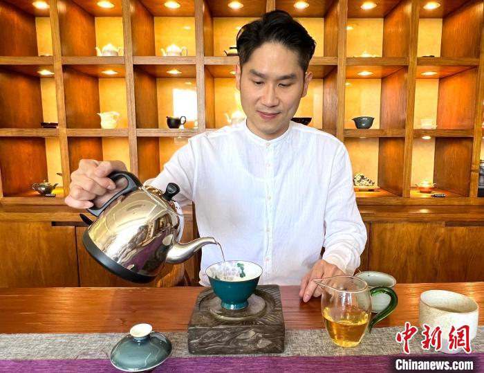 2023年6月,臺灣茶葉世家的后人張洪瑋接受中新社記者采訪。 中新社記者 朱曉穎 攝
