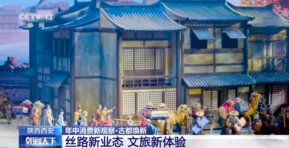 多元文化匯聚西安,帶來的不僅是進口商品消費的火熱,更有精神文化的滋養(yǎng)。臺上正在演繹的實景歌舞劇《駝鈴傳奇》,以盛唐為背景,講述了商貿駝隊勇敢開拓絲路的故事。通過光影虛實依次呈現,伴隨驚心動魄的故事,讓觀眾大呼過癮。