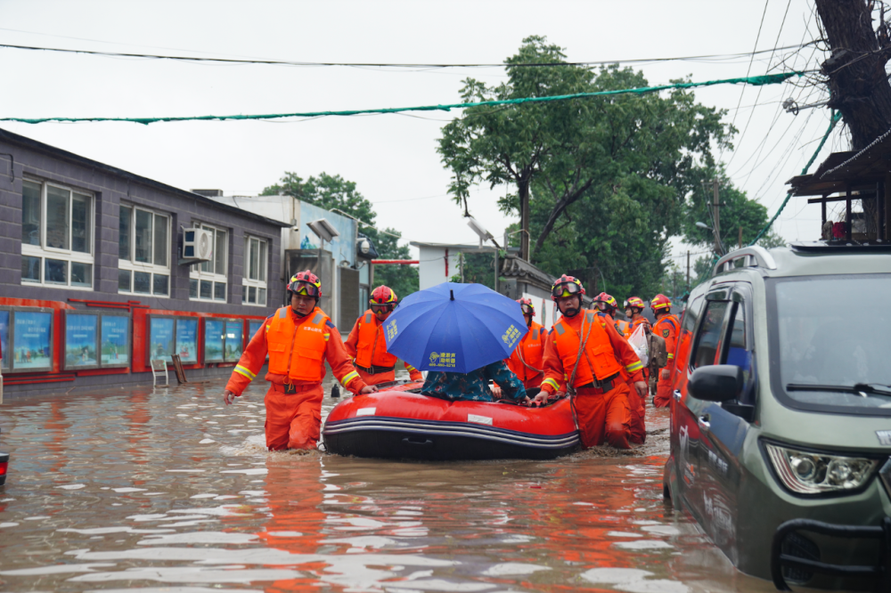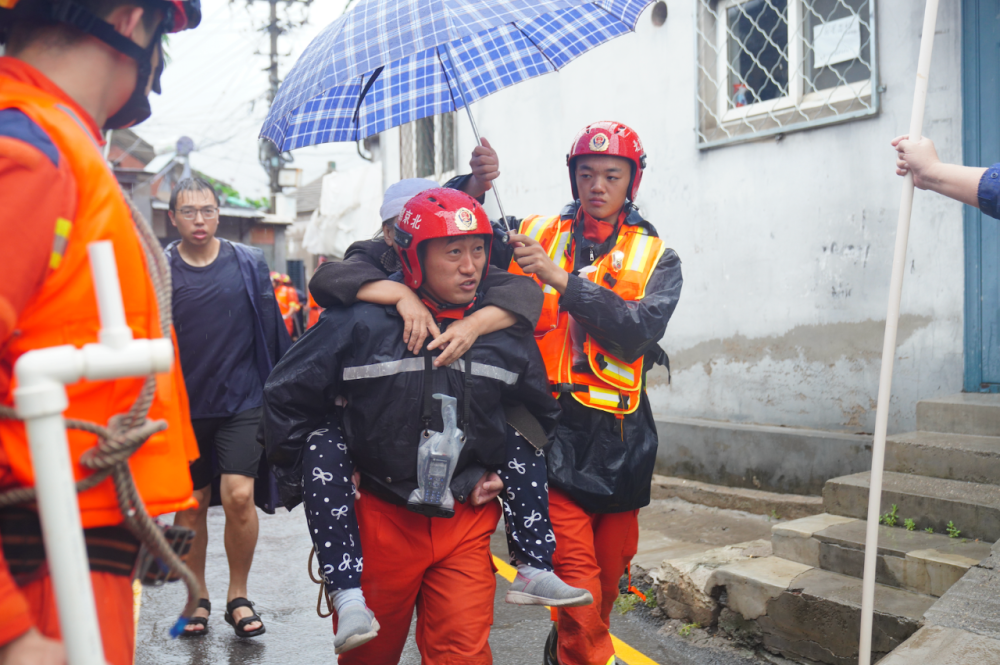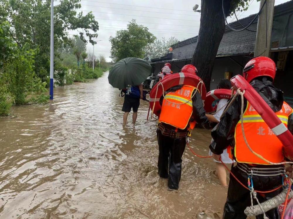 7月31日13時36分,石景山區(qū)廣寧街道麻峪村內(nèi)道路積水最深處達(dá)1米,石景山區(qū)消防救援支隊接警后,出動指戰(zhàn)員35人、消防車8輛、沖鋒舟6艘,對被困居民進(jìn)行疏散。