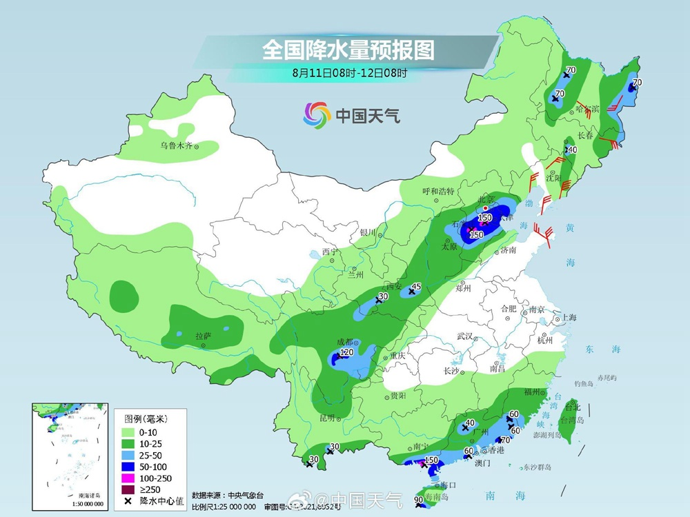 2. 主要降雨時(shí)段為今天下午到明天白天。其中,北京—今天傍晚到夜間;河北—今天下午到12日上午;天津—今天白天至12日夜間。