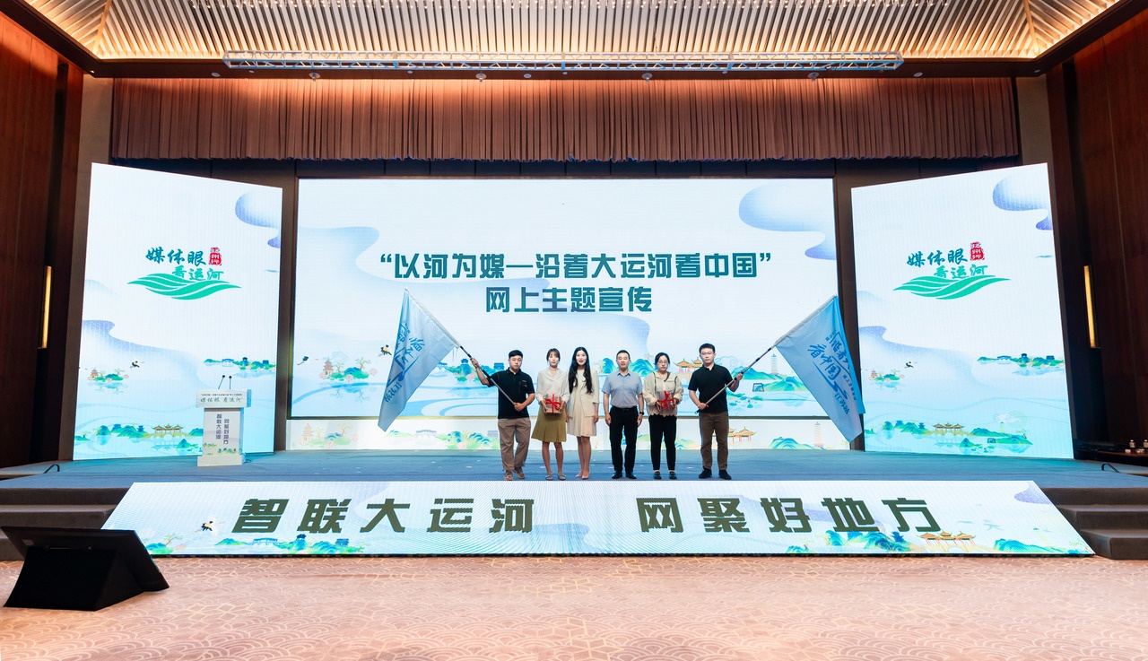 “以河為媒—沿著大運(yùn)河看中國(guó)”網(wǎng)上主題宣傳授旗、贈(zèng)書(shū)現(xiàn)場(chǎng)