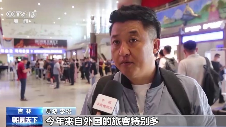 導(dǎo)游 李松:今年來自外國的旅客特別多,這個(gè)團(tuán)是這個(gè)月我?guī)У牡谖鍌€(gè)團(tuán)了。