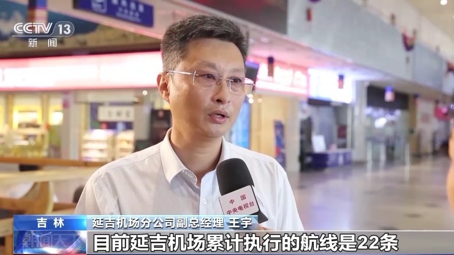 延吉機(jī)場分公司副總經(jīng)理 王宇:目前延吉機(jī)場累計(jì)執(zhí)行的航線是22條,國內(nèi)航線18條,國際航線4條。每周能達(dá)到對韓國的航線84班,對韓國的航班量位居?xùn)|北的第一位。