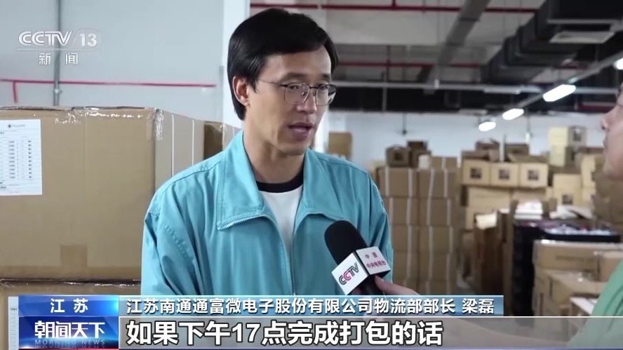 江蘇南通通富微電子股份有限公司物流部部長 梁磊:我們當(dāng)天的出貨,如果17點(diǎn)完成打包的話,當(dāng)天晚上12點(diǎn)前,基本就能到達(dá)深圳??蛻舻囊恍┨丶奔?,我們甚至凌晨就能派送到位。