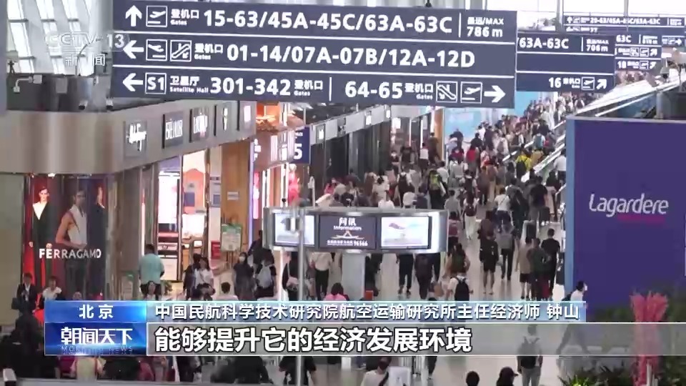 中國民航科學(xué)技術(shù)研究院航空運(yùn)輸研究所主任經(jīng)濟(jì)師 鐘山:通過我們這種“干支通、全網(wǎng)聯(lián)”以及通程航班的模式,能夠讓我們?nèi)?、四線城市的旅客,融到整個(gè)國家的經(jīng)濟(jì)社會(huì)建設(shè)中,能夠提升它的經(jīng)濟(jì)發(fā)展環(huán)境。特別是從統(tǒng)一大市場的開放角度來看,這個(gè)是最終能夠促進(jìn)我們國內(nèi)市場的銜接。