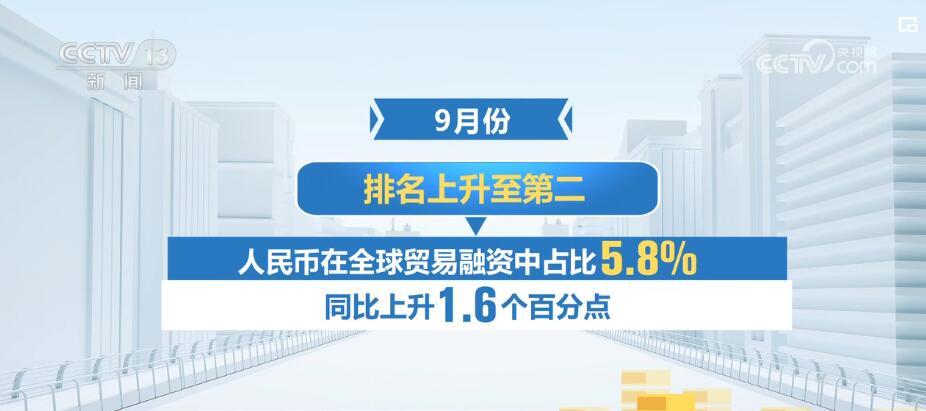 伴隨著中國金融業(yè)對外開放持續(xù)深化,人民幣國際化水平持續(xù)提升。從貿(mào)易看,今年1—9月,貨物貿(mào)易中人民幣結(jié)算的占比達(dá)到了24.4%,同比上升7個百分點(diǎn),為近年來最高水平。與此同時,人民幣融資貨幣功能穩(wěn)步提升。9月份,人民幣在全球貿(mào)易融資中占比為5.8%,同比上升1.6個百分點(diǎn),排名上升至第二。目前,全世界有80多個國家和經(jīng)濟(jì)體將人民幣納入儲備貨幣。