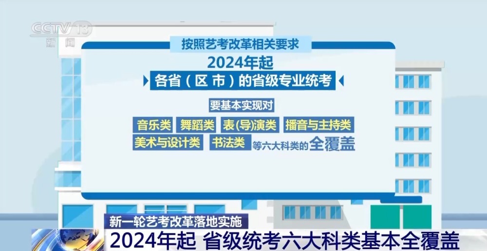 按照藝考改革相關(guān)要求,2024年起,各省(區(qū)、市)的省級(jí)專業(yè)統(tǒng)考要基本實(shí)現(xiàn)對(duì)音樂類、舞蹈類、表(導(dǎo))演類、播音與主持類、美術(shù)與設(shè)計(jì)類、書法類等六大科類的全覆蓋。戲曲類實(shí)行省際聯(lián)考。對(duì)于考試組織確有困難的個(gè)別科類,有關(guān)省份可通過省際聯(lián)考或“考評(píng)分離”等方式實(shí)施。據(jù)介紹,上海市已按照最新要求,對(duì)藝術(shù)類專業(yè)統(tǒng)考進(jìn)行了調(diào)整。