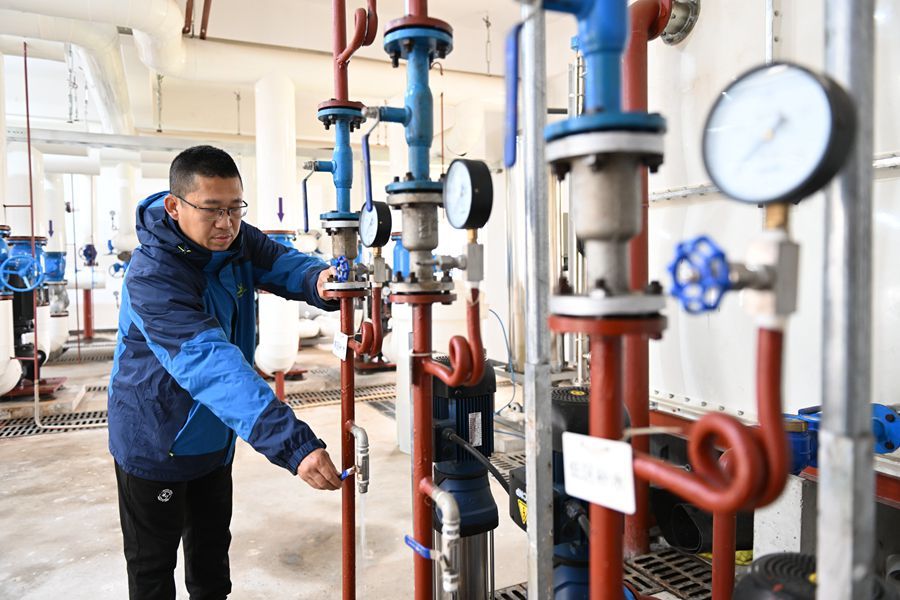 11月15日,唐山市熱力集團有限公司工作人員在唐山市路南區(qū)綠城南湖春曉五號熱力站內檢查供暖設備。連日來,河北省唐山市路南區(qū)組織相關部門、企業(yè)對轄區(qū)內供熱管網、供暖設施和居民家中的采暖設備等進行巡檢維護,做好供暖保障工作,確保群眾溫暖過冬。