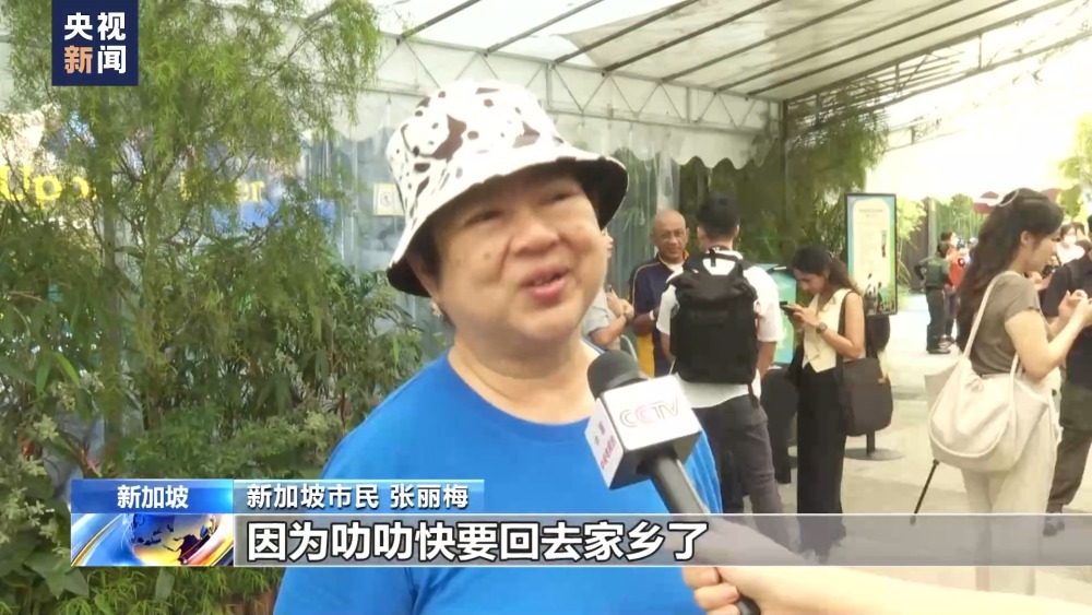 新加坡市民 張麗梅:因?yàn)檫愤房煲厝ゼ亦l(xiāng)了,所以我要過來跟它打招呼,說拜拜。很傷心,因?yàn)槲液芟M梢粤粼谛录悠拢墒且彩歉吲d,因?yàn)樗梢曰厝ゼ亦l(xiāng)幫助研究和保護(hù)大熊貓了。