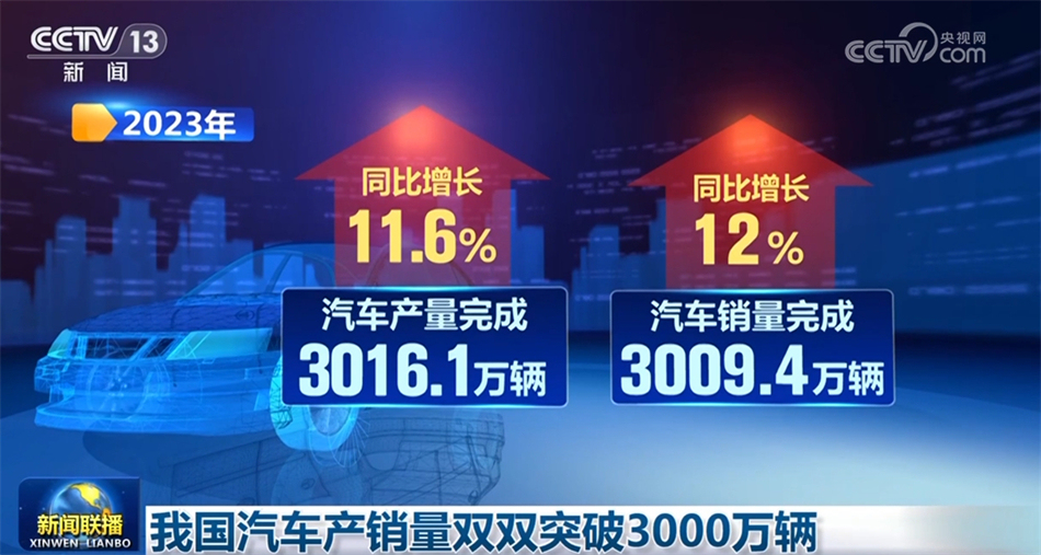 中國(guó)汽車工業(yè)協(xié)會(huì)1月11日發(fā)布的數(shù)據(jù)顯示,2023年,我國(guó)汽車產(chǎn)銷量首次雙雙突破3000萬輛,創(chuàng)歷史新高。