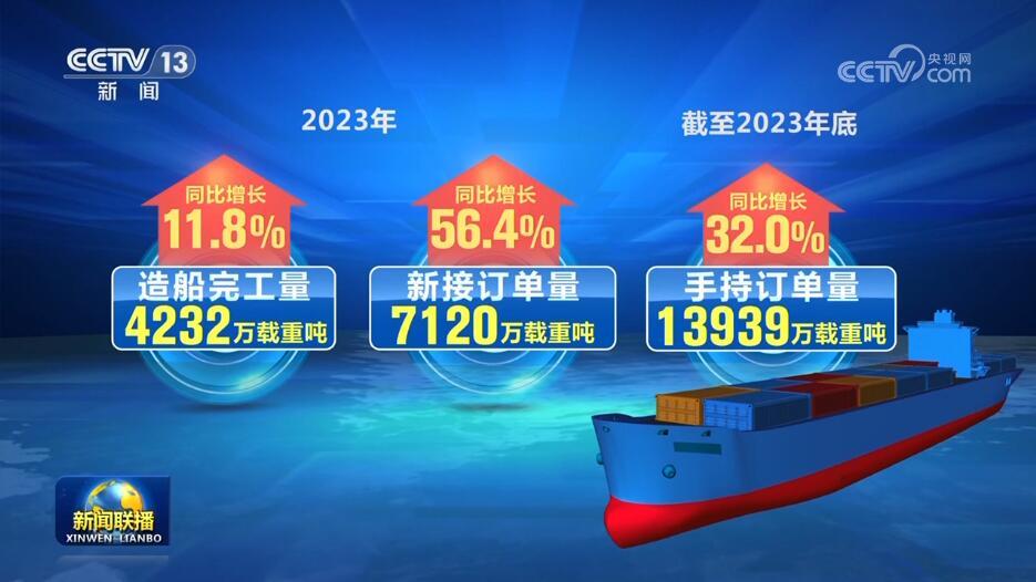 最新數(shù)據(jù)顯示,2023年我國(guó)造船完工量4232萬載重噸,同比增長(zhǎng)11.8%;新承接訂單量7120萬載重噸,同比增長(zhǎng)56.4%;截至2023年底,手持訂單量13939萬載重噸,同比增長(zhǎng)32.0%,所有指標(biāo)第一次實(shí)現(xiàn)2位數(shù)增長(zhǎng)。