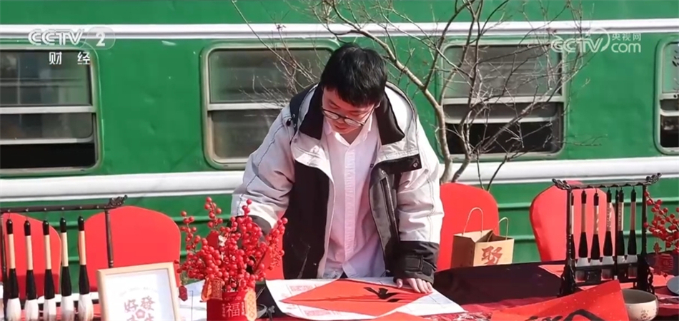 在熱鬧的年豬宴一旁,還有年畫拓印、新年剪紙、福字春聯的年味集市和打年糕活動,現場聚集了不少游客參與其中,感受熱鬧的氛圍。