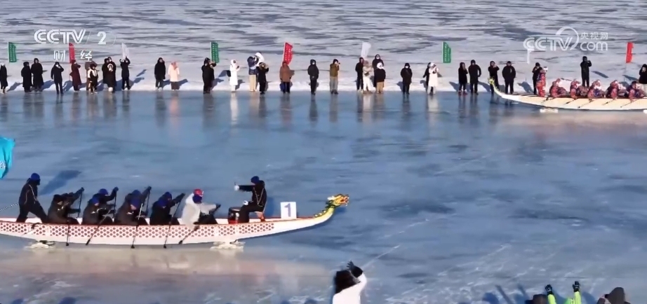 “東北老鐵”對陣“廣東靚仔” 南北冰上賽龍舟上演