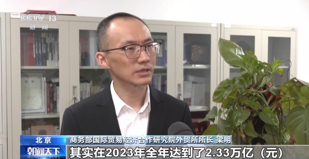 商務(wù)部國際貿(mào)易經(jīng)濟合作研究院外貿(mào)所所長 梁明:(我們的)跨境電商,在2023年全年達到了2.33萬億,同比增長15.6%,比去年增速是加快了5.8個百分點?!靶氯龢印蔽覀円彩鞘状瓮黄?萬億,增速是接近30%。