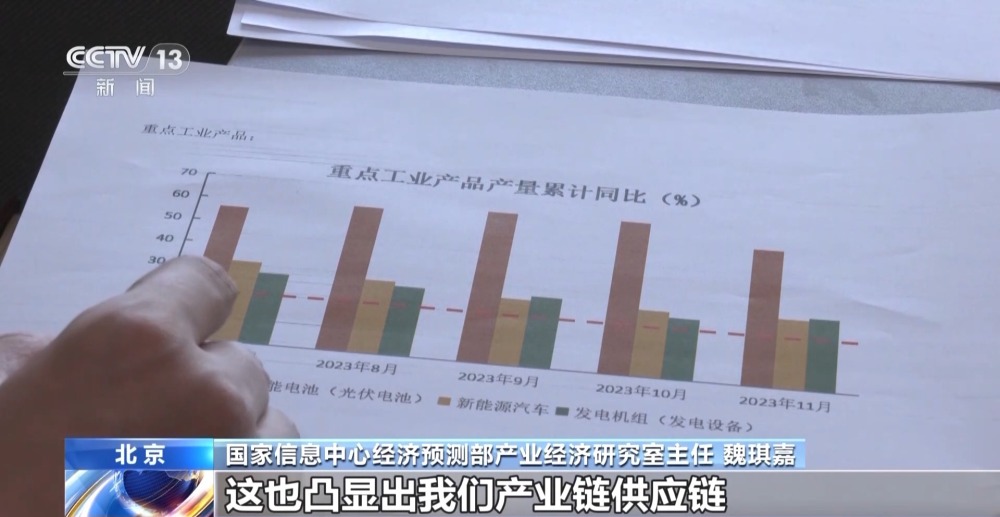 國家信息中心經(jīng)濟預(yù)測部產(chǎn)業(yè)經(jīng)濟研究室主任 魏琪嘉:像這樣的產(chǎn)品實現(xiàn)了兩位數(shù)的增長的這種態(tài)勢,其實對于一個經(jīng)濟體來講是實屬不易的。這也凸顯出我們產(chǎn)業(yè)鏈供應(yīng)鏈配套能力的大幅提升。產(chǎn)品背后蘊含的是技術(shù)、要素的優(yōu)化組合,催生出新的生產(chǎn)能力,其實也是我們經(jīng)濟發(fā)展中的這種亮點。