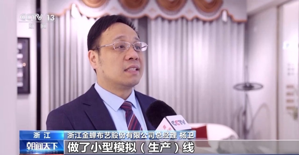 浙江金蟬布藝股份有限公司總經(jīng)理 楊衛(wèi):剛開始,父輩們會覺得投資好大,它效果怎么樣?然后我列了各種數(shù)據(jù)做了小型模擬生產(chǎn)線,把這些結(jié)果給父親看,最后父親覺得確實(shí)應(yīng)該走智能化的道路,然后我們就更大規(guī)模投建整個的智能工廠。