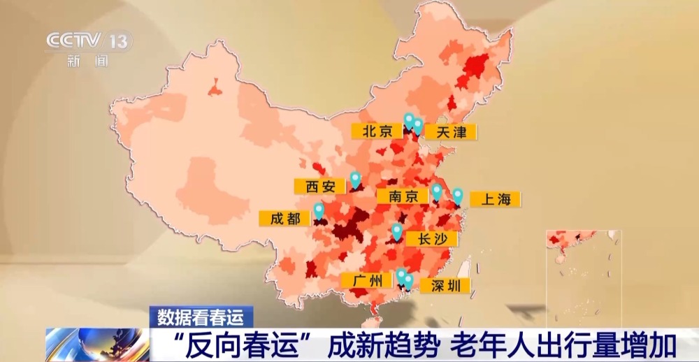 數(shù)據(jù)顯示,今年“反向春運(yùn)”趨勢(shì)明顯,更多的老年人選擇前往子女的工作地團(tuán)聚,他們的來(lái)源地主要集中在四川、河北、湖北、湖南等省份,而主要目的地則是北京、西安、天津、成都、廣州、上海、南京、深圳、長(zhǎng)沙等一、二線中心城市。