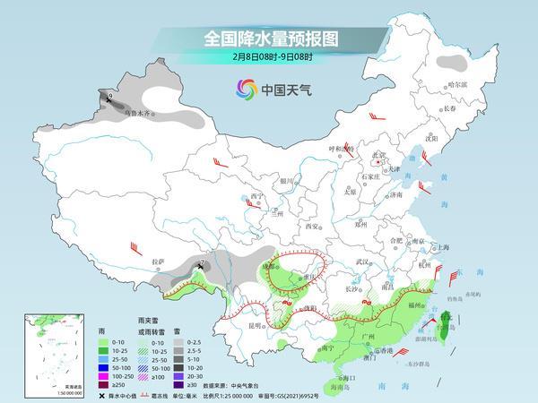今天(2月7日)南方大范圍雨雪天氣持續(xù),湖南中南部、江西西南部等地部分地區(qū)有大雪,局地暴雪;貴州中部和東部、湖南中南部以及江西西北部山區(qū)、浙江中南部山區(qū)等地部分地區(qū)有凍雨。明天,南方雨雪將開始減弱,到除夕全國大部地區(qū)都將迎來晴朗天氣。同時,隨著雨雪消退,持續(xù)多日的南方濕冷天氣也將在春節(jié)假期間迎來轉(zhuǎn)折。